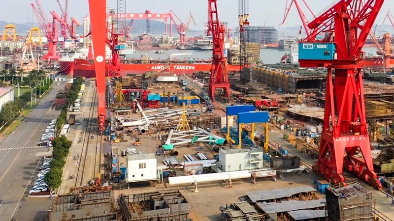 ????中國船舶集團所屬廣船國際在闊別海上風電鋼結構業務長達十年之后,在對海上風電鋼結構市場進行了深度調查研究,對生產、工藝及成本進行了周密規劃,對生產場地進行了適應性改造之后,迅速抓住市場機遇,順利承接了金額超3億元、總物量超3萬噸的海上風電鋼結構訂單。