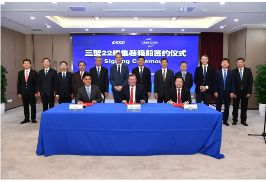 3型22艘綠色集裝箱船簽約,中國船舶集團(tuán)喜獲歷史最大單筆集裝箱船訂單。