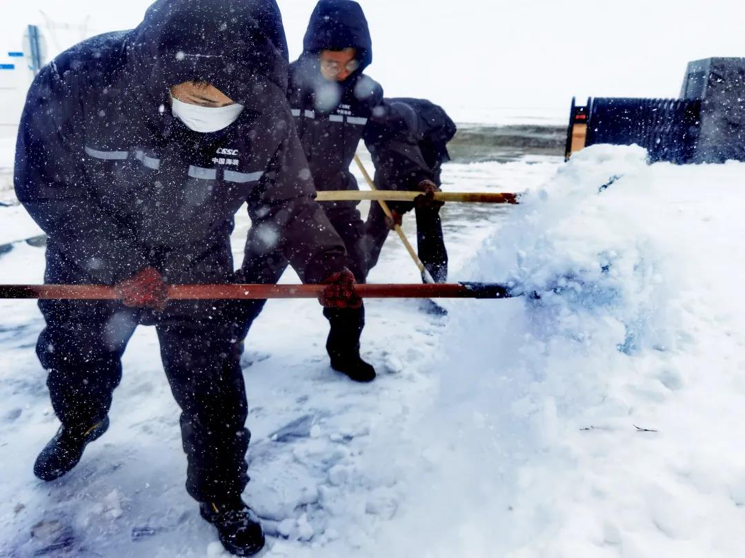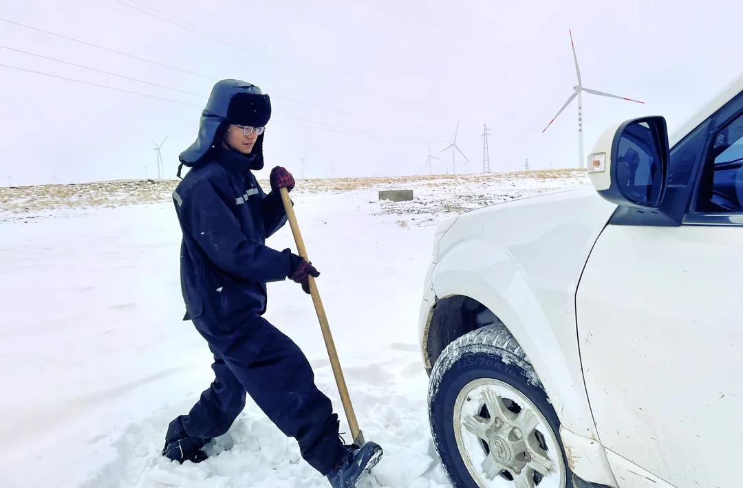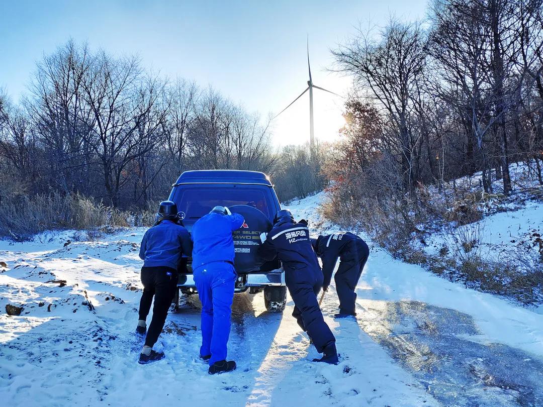 進入11月,內(nèi)蒙古自治區(qū)錫林郭勒盟地區(qū)迎來大面積的暴風(fēng)雪,烏達萊項目人員在趕往風(fēng)場的路上遭遇積雪路段,雖然氣候嚴(yán)寒,但為了及時消除機組故障,大家在積雪路段采取挖雪推車的方式齊心協(xié)力,一同開展清理路面積雪的行動。這個冬日,冰雪阻擋不住海裝追風(fēng)者們勇往直前的步伐,他們只為恪盡職守完成一個承諾——風(fēng)機旋轉(zhuǎn)、帶來光熱。