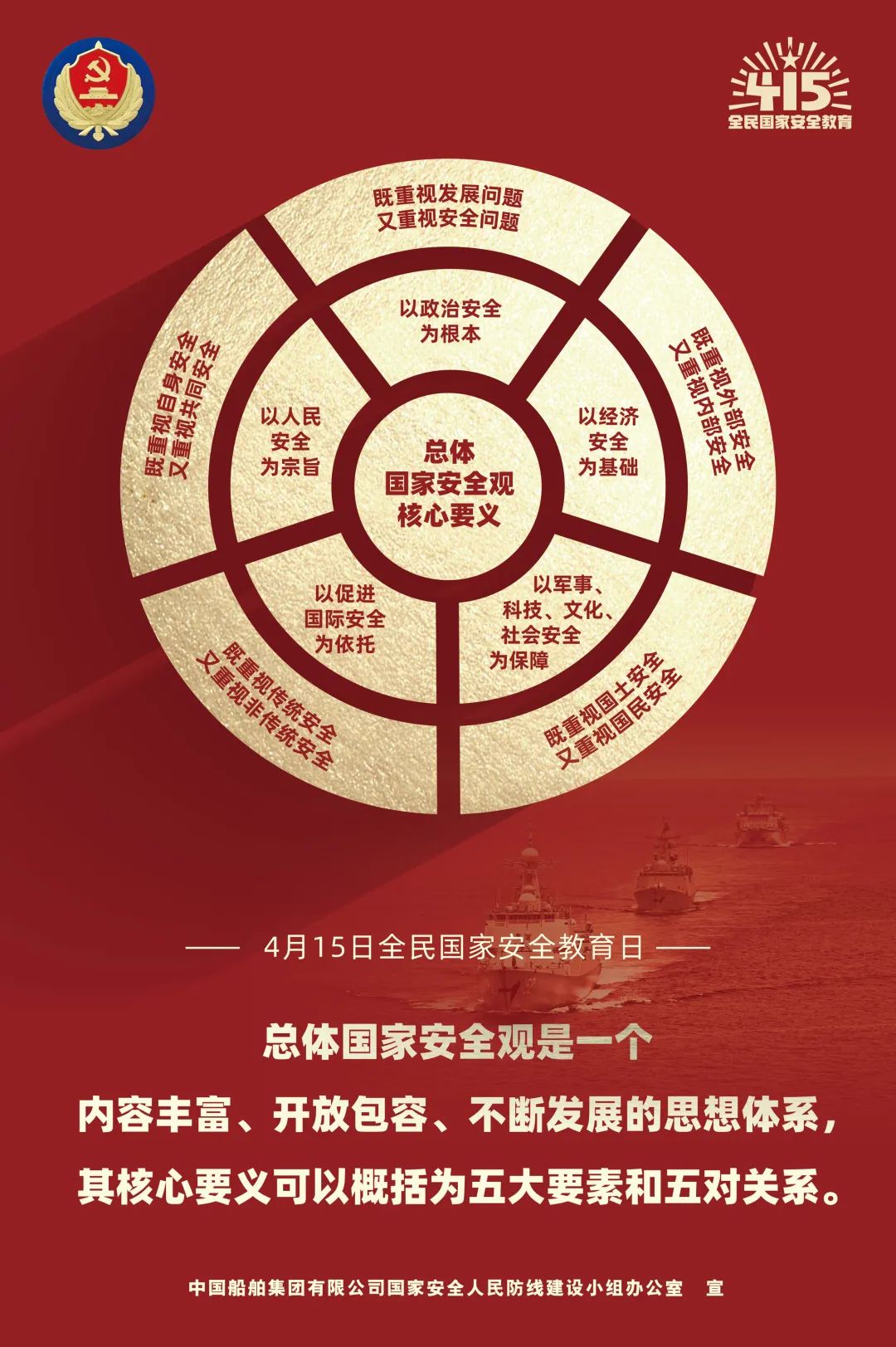 2014年4月15日,習(xí)近平總書記在中央國家安全委員會第一次會議上首次提出總體國家安全觀,強(qiáng)調(diào)要準(zhǔn)確把握國家安全形勢變化新特點(diǎn)新趨勢,堅(jiān)持總體國家安全觀,走出一條中國特色國家安全道路。