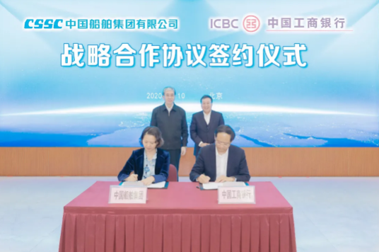 12月10日,中國船舶集團有限公司與中國工商銀行股份有限公司在京簽署戰略合作協議。中國船舶集團黨組書記、董事長雷凡培,黨組成員、總會計師賈海英,工商銀行黨委書記、董事長陳四清,黨委委員、副行長王景武出席簽約儀式。賈海英、王景武分別代表雙方在協議上簽字。同時,在雙方領導的共同見證下,中國船舶集團旗下中船貿易公司與工商銀行旗下工銀金融租賃簽署了戰略合作協議。