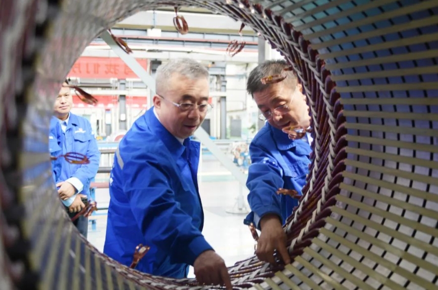 王國強深入生產科研一線,調研了相關裝備園區、車間和重點產品,與全國技術能手、一線工人就工裝應用、工藝工法、安全生產等進行親切交流,聽取了企業負責人關于生產經營、科技創新、人才培養、精益管理、發展規劃、黨的建設等方面情況匯報,并對下一步工作提出具體要求。