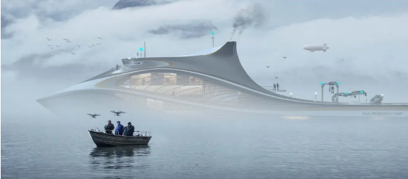 該母船是一艘具有革命性意義的智能型科考船,可搭載轉運及布放多種類、批量化的空、海、潛立體探測無人系統。母船在目標海區批量化布放無人系統,可面向任務自適應組網,實現對特定目標的立體動態觀測。首次應用空、海、潛無人系統的跨域協同控制技術,實現無人機、無人艇、無人潛器等無人系統之間的協同作業,將實現科考手段的革命性突破。