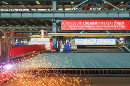 在喜迎黨的二十大之際,中國船舶集團旗下滬東中華生產捷報頻傳。10月14日,滬東中華為中國石油國際事業有限公司建造的17.4萬立方米大型液化天然氣(LNG)運輸船、為法國達飛海運集團建造的全球首批1.3萬TEU液化天然氣(LNG)雙燃料動力超大型集裝箱船同日開工,還有一艘為上海申能集團建造的8萬立方米LNG船主船體實現結構成型。至此,在短短的一周時間里,滬東中華共實現了一船出塢、一船入塢、一船完成試航、一船主船體實現結構成型、兩船開工等六大生產節點,建造能級和效率不斷提升,掀起了“奮戰第四季度、勇奪全年目標”的生產經營新高潮。