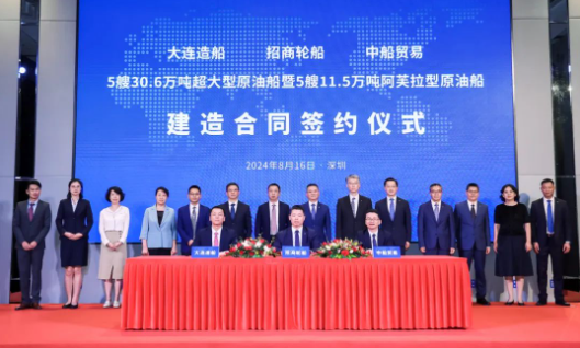 近日,中國(guó)船舶集團(tuán)旗下大連造船聯(lián)合中船貿(mào)易與招商輪船簽署5艘30.6萬噸原油船、5艘11.5萬噸原油船建造合同。