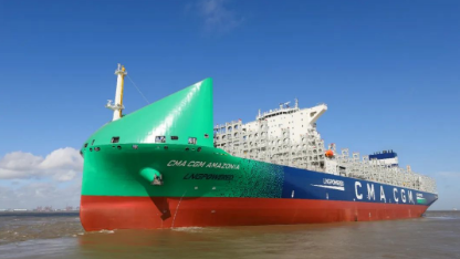 8月23日,中國船舶集團旗下滬東中華聯合中船貿易為法國達飛海運集團建造的13000TEU雙燃料動力集裝箱船系列6號船“CMA CGM AMAZONIA”號命名交付。至此,該系列船6艘船全部交付,順利收官。