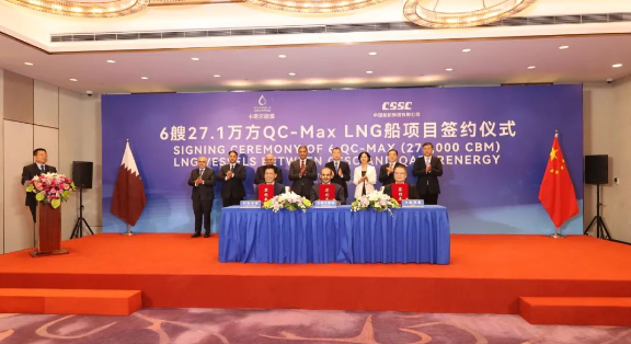 9月9日,三方新簽了6艘全球最大27.1萬立方米超大型LNG船訂單。至此,三方已累計簽訂24艘27.1萬立方米超大型LNG船、12艘17.4萬立方米大型LNG船,以載氣量計,位居全球各船廠之首。卡塔爾能源事務(wù)國務(wù)大臣、卡塔爾能源總裁兼首席執(zhí)行官薩阿德·謝里達·阿爾卡比,上海市副市長陳杰,中國船舶集團黨組成員、總會計師賈海英等出席簽約儀式。