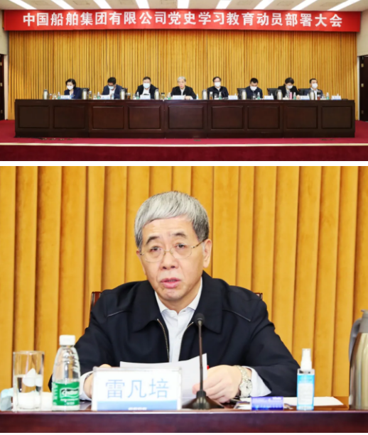 3月3日,中國船舶集團有限公司黨組召開黨史學習教育動員部署大會。中國船舶集團黨組書記、董事長、黨史學習教育領導小組組長雷凡培出席會議并講話,黨組副書記、總經理、黨史學習教育領導小組副組長楊金成主持會議,在京的黨組成員出席會議。