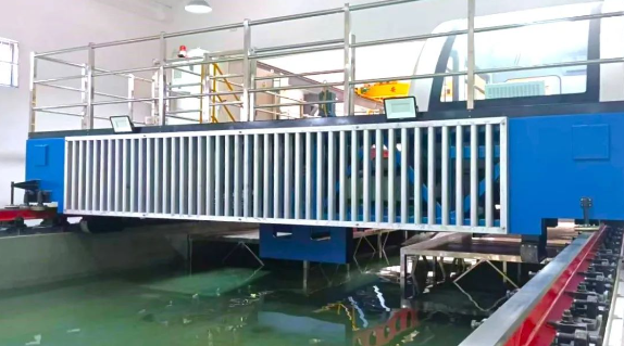 中山大學“拖曳水池建造” 項目包含了拖曳水池拖車、軌道系統(tǒng)、造消波系統(tǒng)、造風系統(tǒng)等關(guān)鍵試驗設(shè)備。拖車實現(xiàn)從0.02米/秒到8米/秒的高精度、高速比調(diào)速,滿足拖曳水池流速儀標定和船舶試驗的雙重需求;造風系統(tǒng)實現(xiàn)了風譜模擬能力。