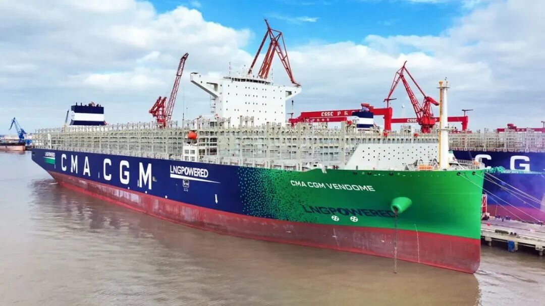 12月12日,中國船舶集團有限公司旗下滬東中華為法國達飛海運集團建造的全球最大24000TEU級液化天然氣(LNG)雙燃料動力集裝箱船“達飛 旺多姆”號提前8個半月命名交付。這標志著滬東中華全面完成2025年生產經營任務,也是其交付的第100艘大型集裝箱船。